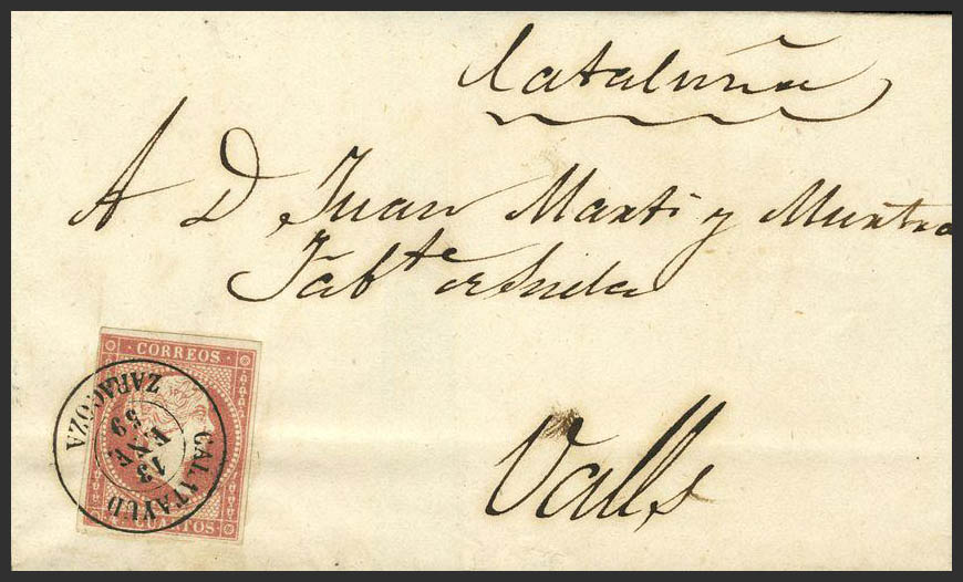 Aragón. Historia Postal. CALATAYUD / ZARAGOZA. MAGNIFICA.