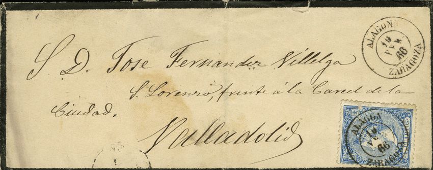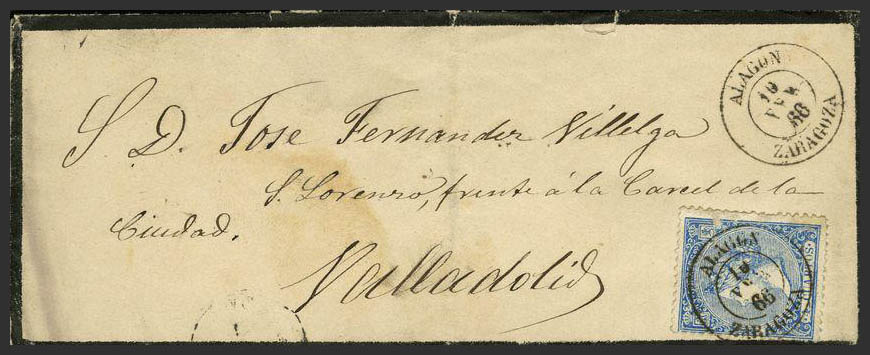 81. 1866. 4 cuartos azul. ALAGON a VALLADOLID. Matasello ALAGON / ZARAGOZA. MAGNIFICA.