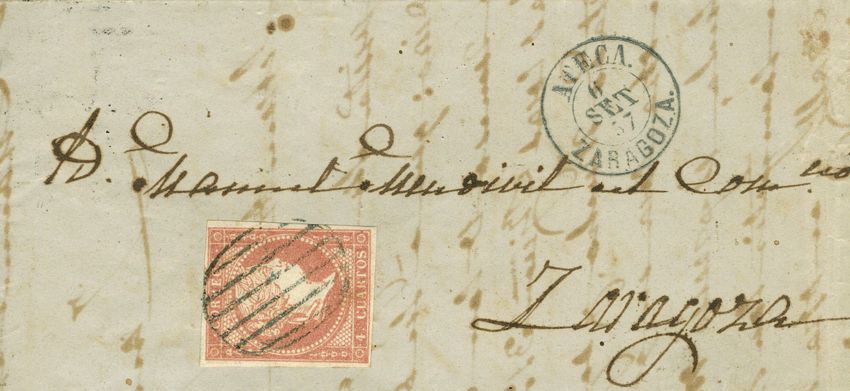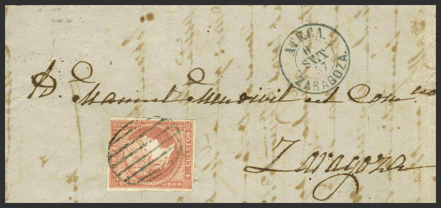 Aragón. Historia Postal. En el frente ALMUNIA / ZARAGOZA. MAGNIFICA.