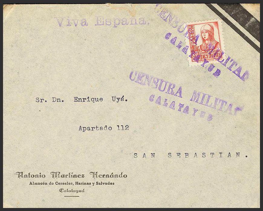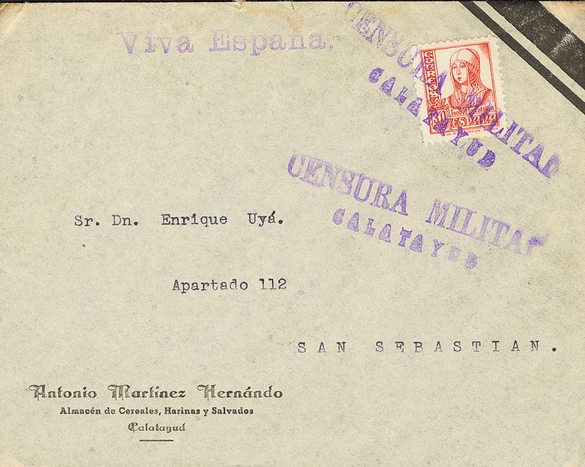 Aragón. Historia Postal. CENSURA MILITAR / CALATAYUD. MAGNIIFCA.