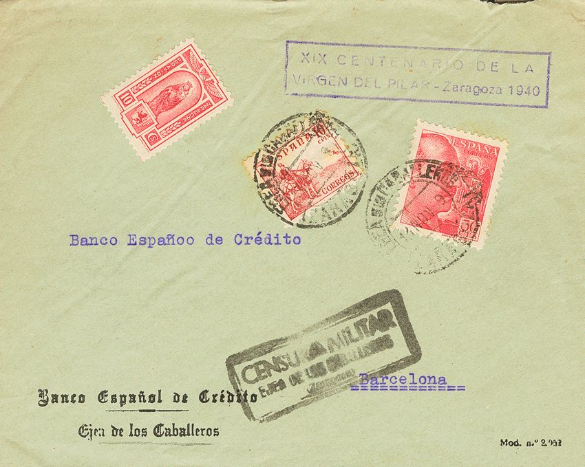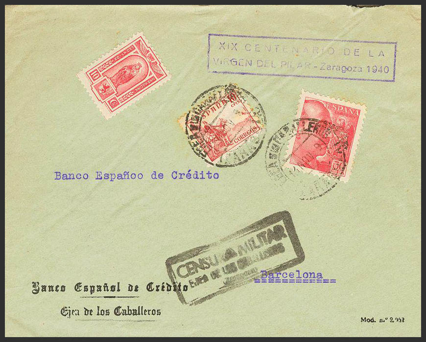 Aragón. Historia Postal. CENSURA MILITAR / EJEA DE LOS CABALLEROS. MAGNIFICA.