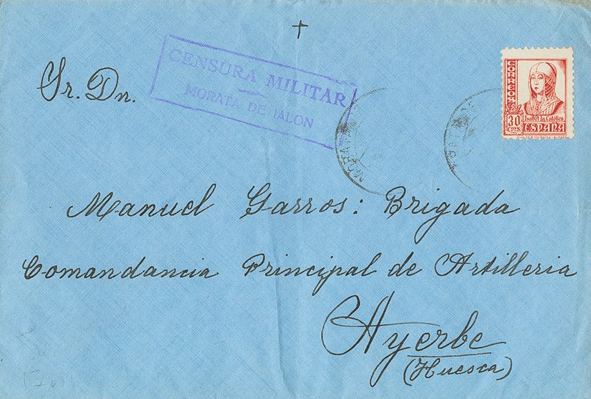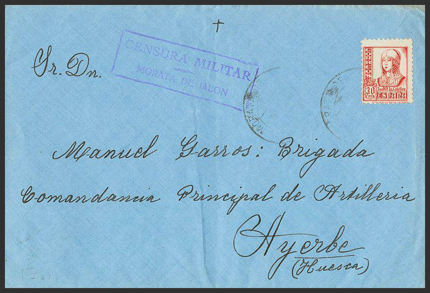 Aragón. Historia Postal. CENSURA MILITAR / MORATA DE JALON. MAGNIFICA.