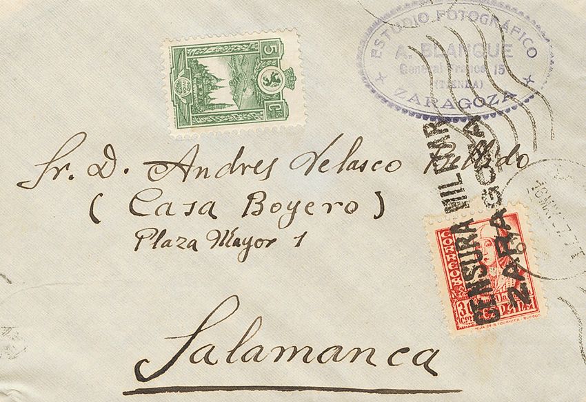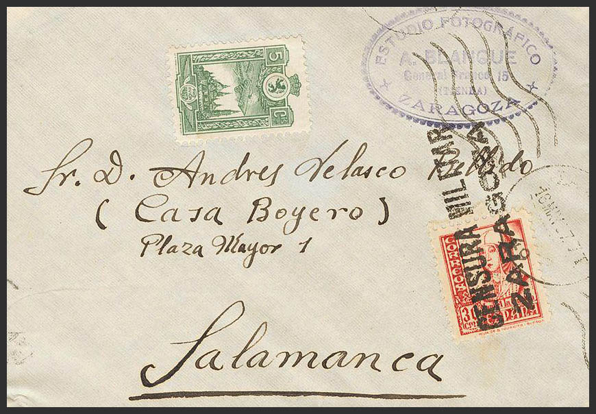 Aragón. Historia Postal. Matasello CENSURA MILITAR / ZARAGOZA. MAGNIFICA.