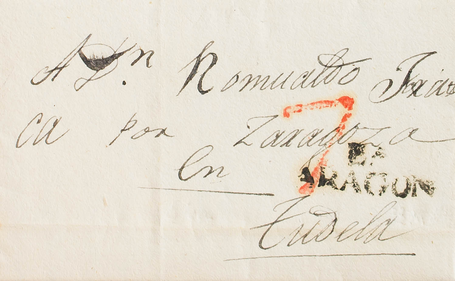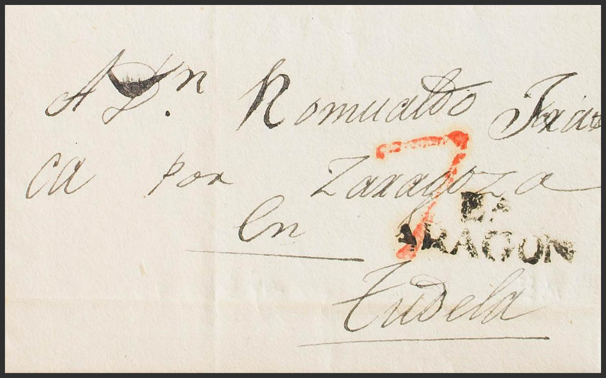 1835. EJEA DE LOS CABALLEROS a TUDELA. Marca Eª / ARAGON (P.E.3) edición 2004. MAGNIFICA.