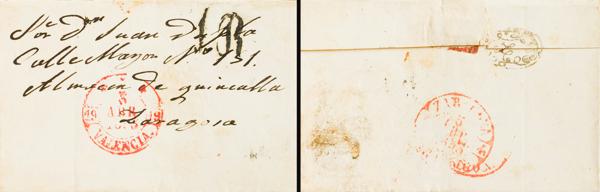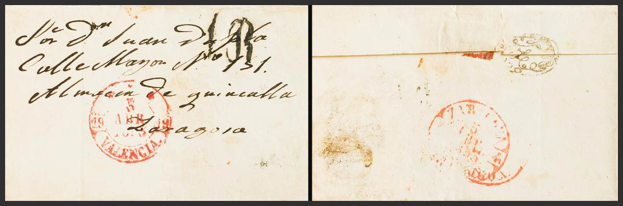 1853. VALENCIA a ZARAGOZA. Marca "Z", en negro de llegada al dorso (P.E.44) edición 2004. MAGNIFICA Y RARA.