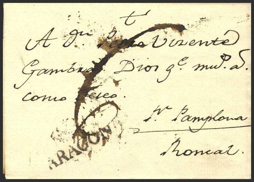 1801. ZARAGOZA a RONCAL. Marca ARAGON, en negro (P.E. 17). BONITA.
