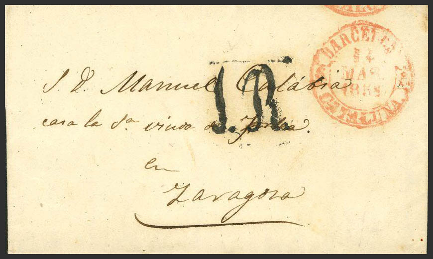Aragón. Prefilatelia. "1 RL", a la llegada.