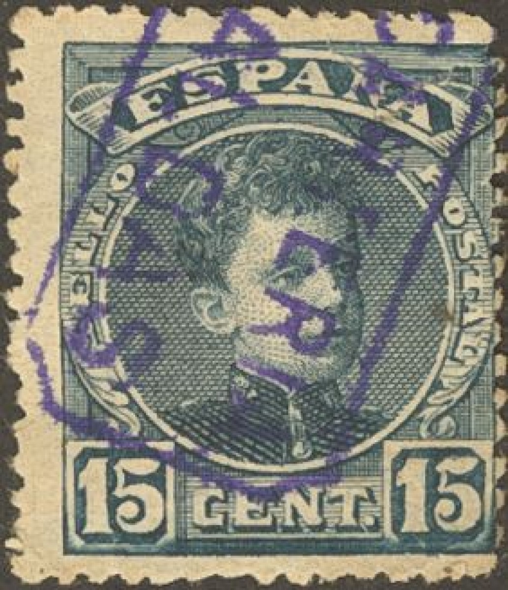 245. 1901. 15 cts violeta. Matasello carterÃa CALDAS / OVIEDO.