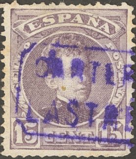 245. 1901. 15 cts castaño. Matasello carterÃa LASTRES / OVIEDO.