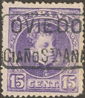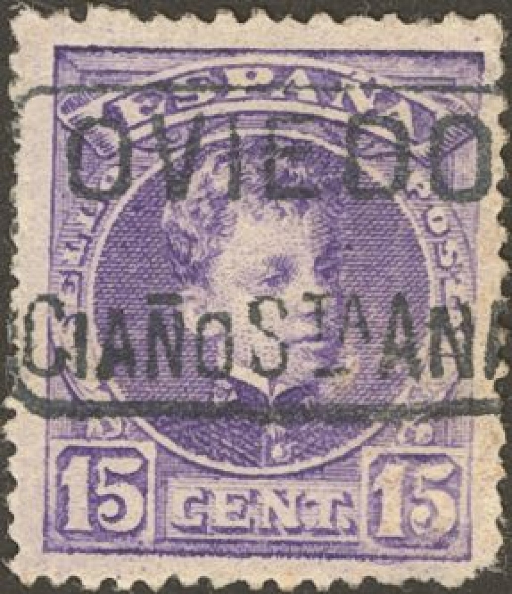 245. 1901. 15 cts violeta. Matasello carterÃa CIAÑO STA. ANA / OVIEDO.