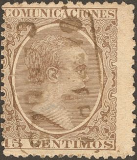 219. 1889. 15 cts castaño. Matasello CARTERIA / CANDAS. MAGNIFICA.