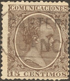 219. 1889. 15 cts castaño. Matasello CARTERIA / LUANCO.