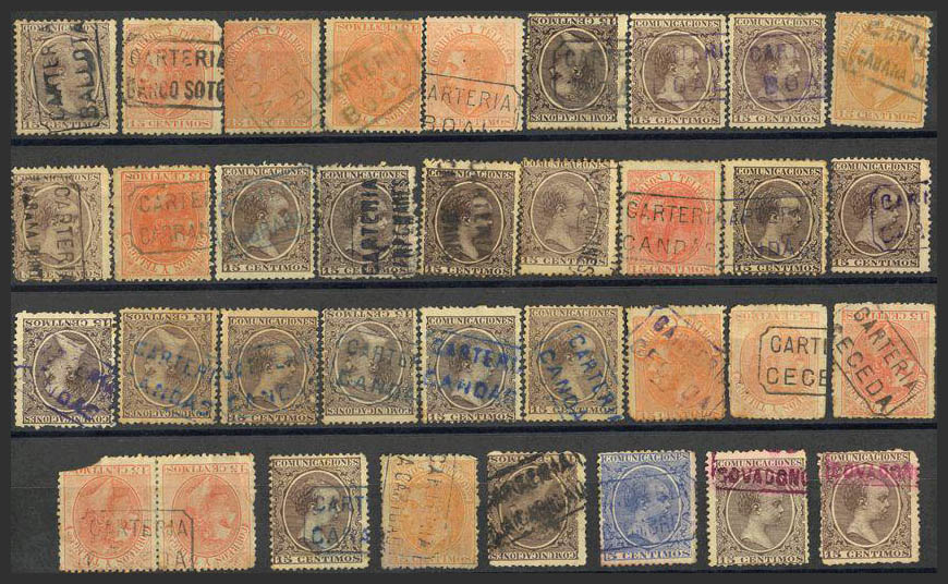 210, 219. (1900ca). Colección de carterías de la provincia de OVIEDO, generalmente buenas estampaciones. IMPRESCINDIBLE EXAMINAR.
