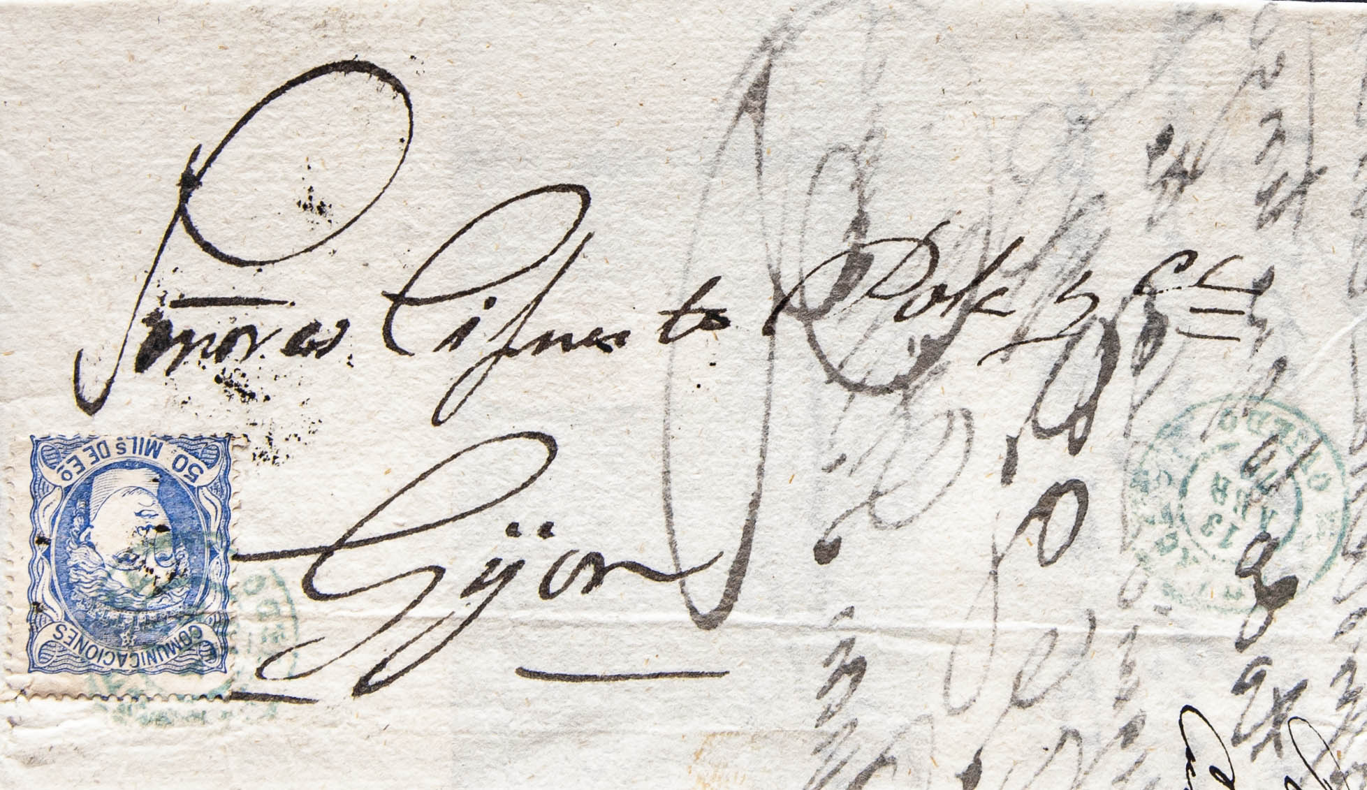 Asturias. Historia Postal. LUARCA / OVIEDO, en azul. RARA.