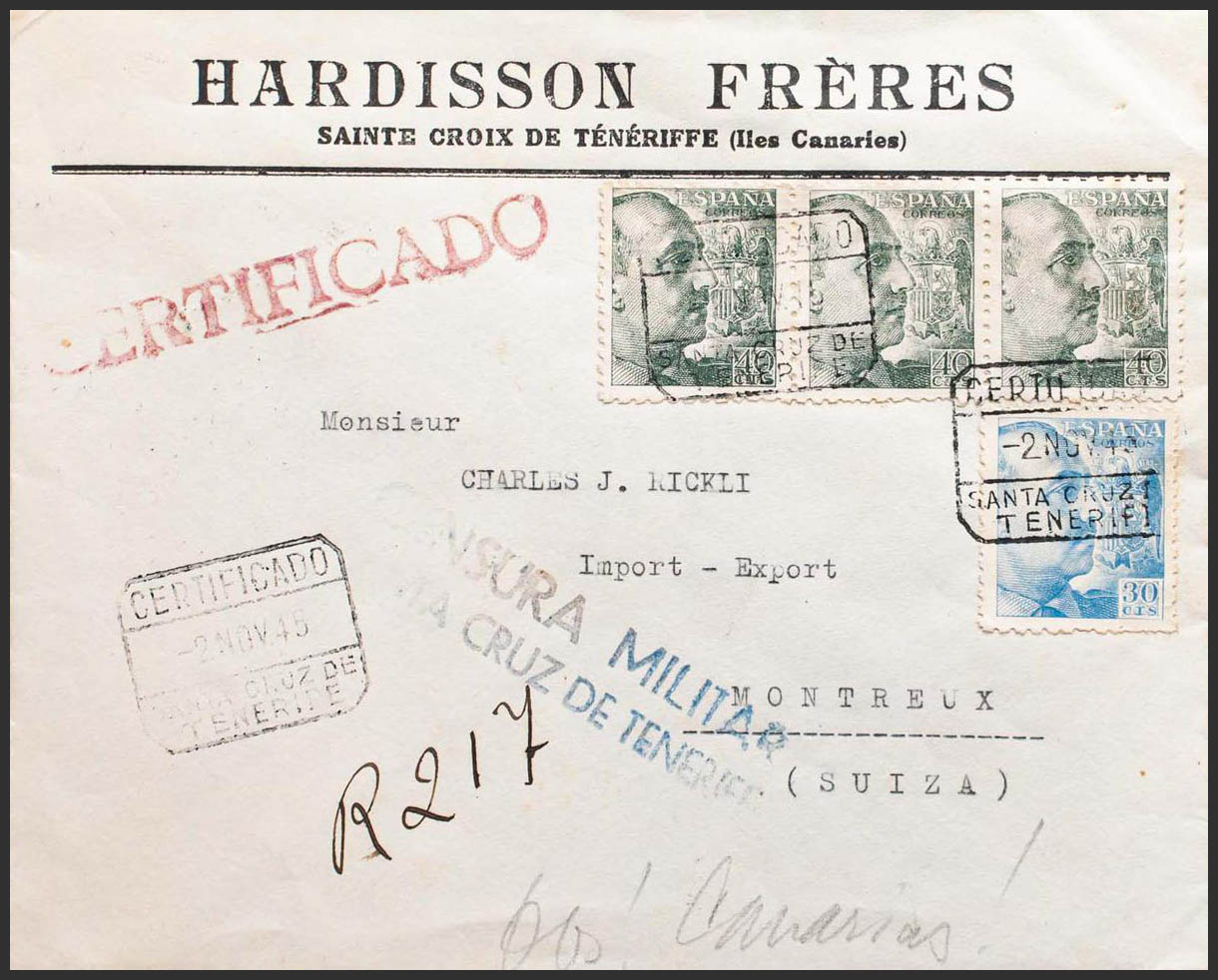 Canarias. Historia Postal. CERTIFICADO / SANTA CRUZ DE TENERIFE, al dorso llegada. MAGNIFICA.