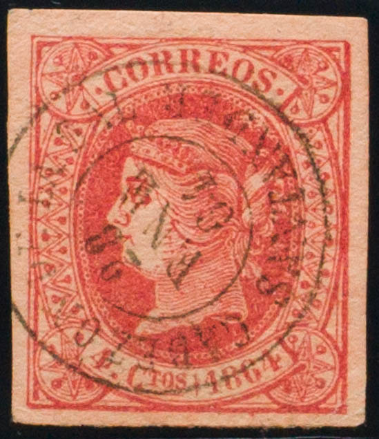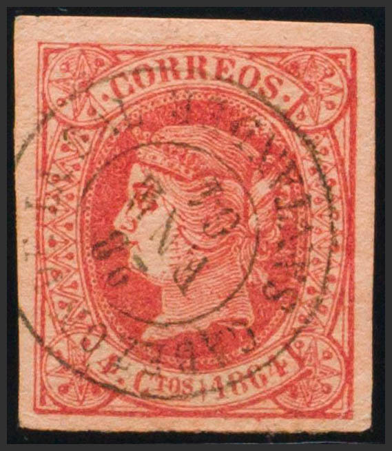 64. 1864. 4 cuartos rojo. Matasello CABEZON DE LA SAL / SANTANDER. MAGNIFICO.