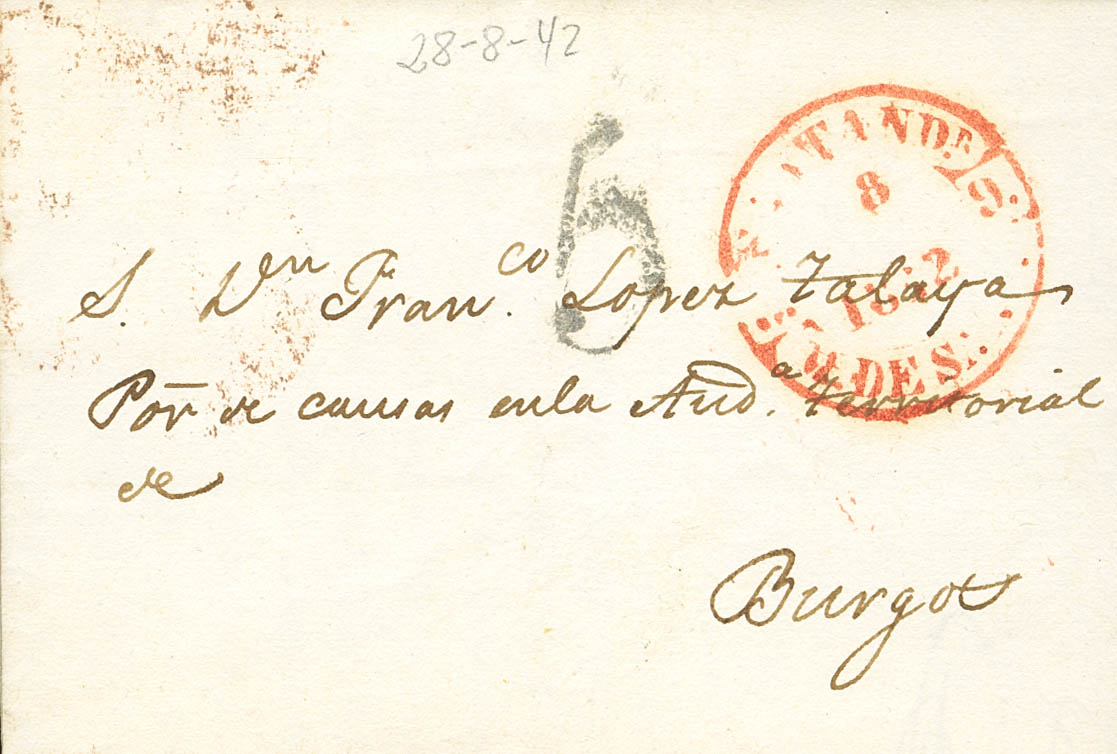 1842. SANTANDER a BURGOS. Baeza SANTANDR. / M. DE SANTR, en rojo. MAGNIFICA.