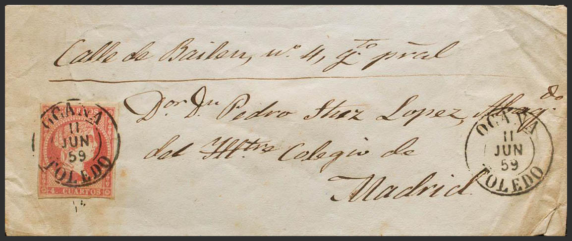 Castilla-La Mancha. Historia Postal. OCAÑA / TOLEDO (Tipo I). MAGNIFICA.