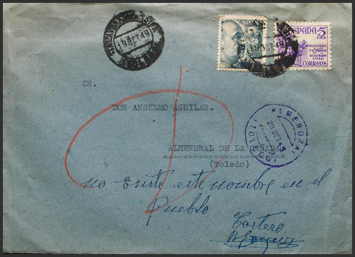 Castilla-La Mancha. Historia Postal. TALAVERA DE LA REINA / (TOLEDO) y devuelta a ALMEDRAL. MAGNIFICA.