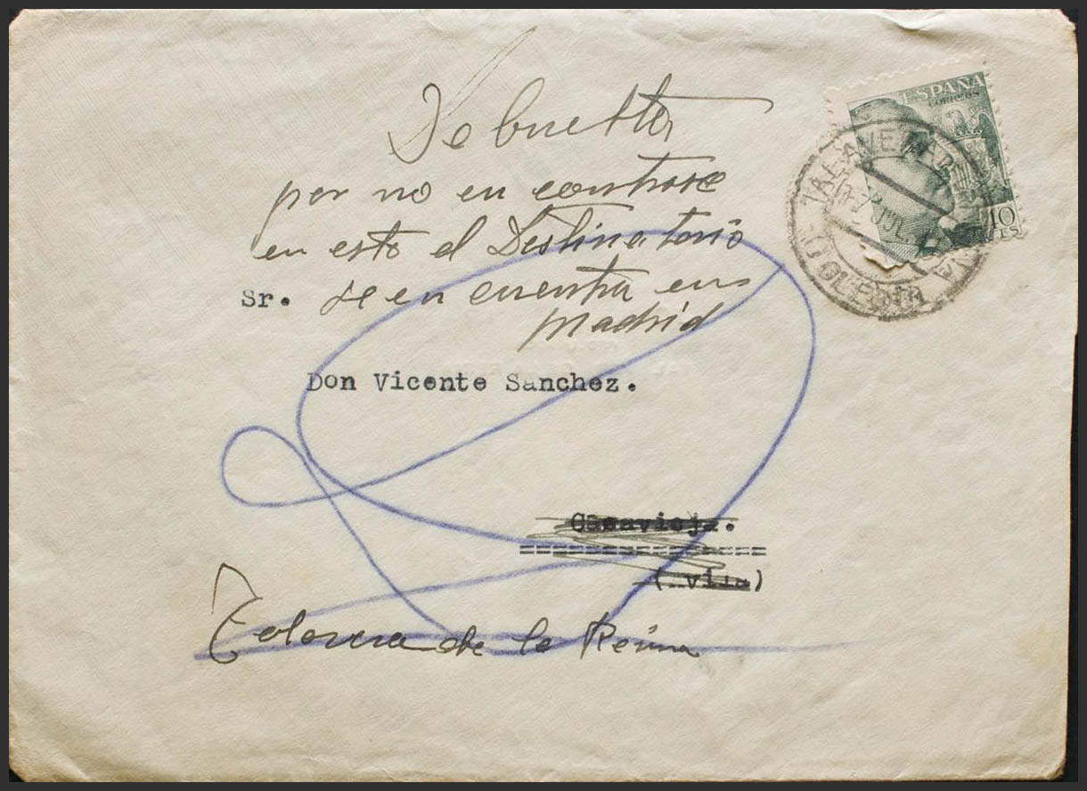 Castilla-La Mancha. Historia Postal. TALAVERA DE LA REINA / TOLEDO, devuelta. MAGNIFICA.