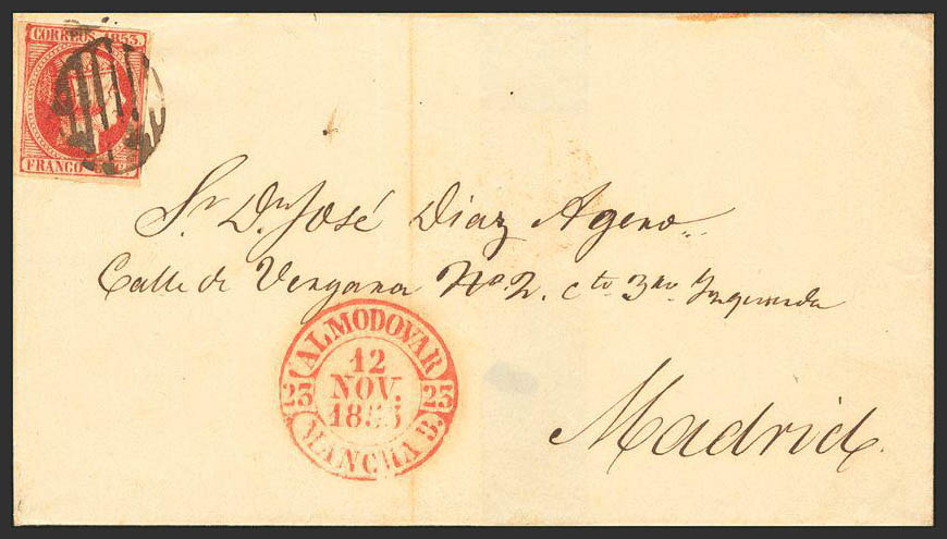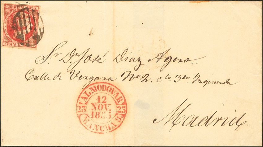 17. 1853. 6 cuartos rosa. ALMODOVAR a MADRID. MAGNIFICA.