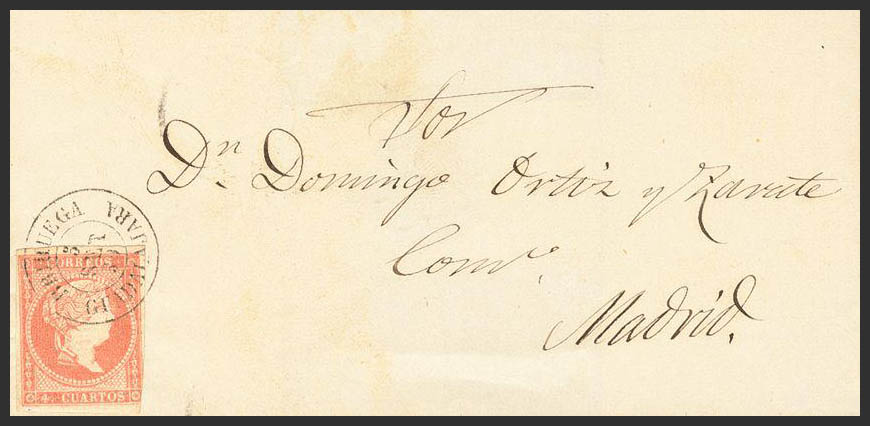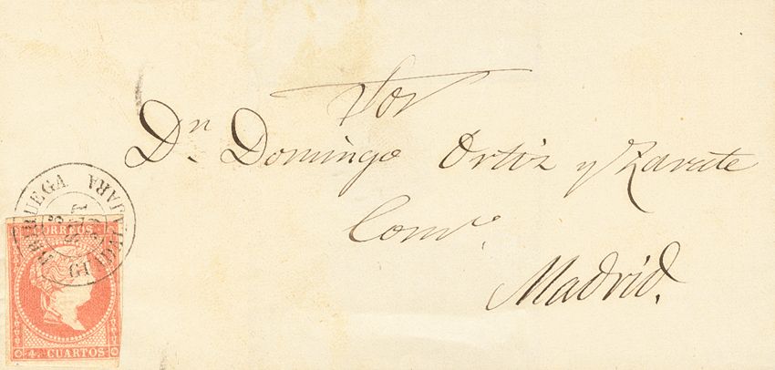 48. 1859. 4 cuartos rojo. BRIHUEGA a MADRID. Matasello BRIHUEGA / GUADALAJARA. MAGNIFICA.