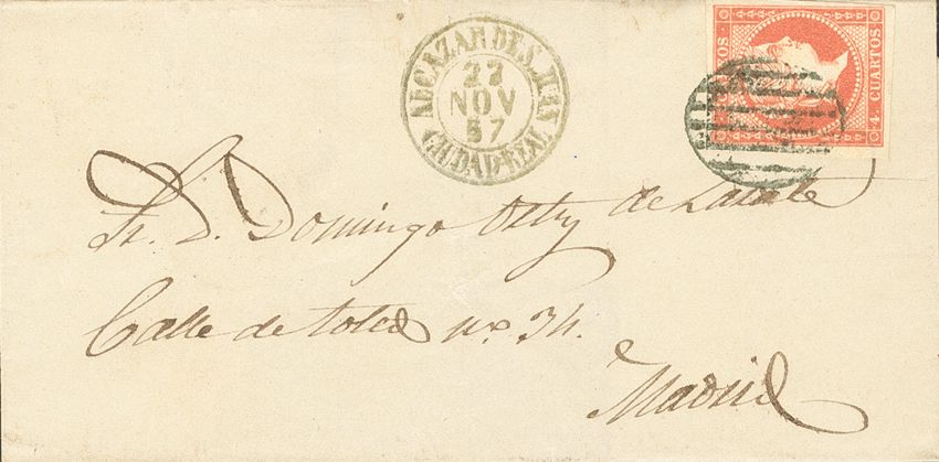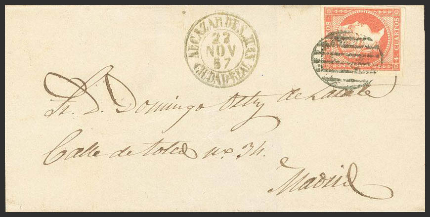 Castilla-La Mancha. Historia Postal. En el frente ALCAZAR DE S. J. / CIUDAD-REAL (Tipo I). MAGNIFICA.