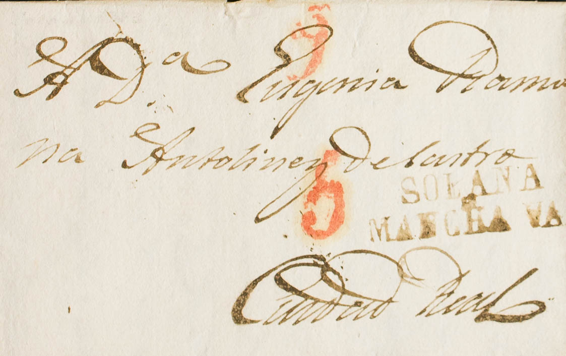 1823. SOLANA a CIUDAD REAL. Marca SOLANA / MANCHA VAJA, en tinta de escribir (P.E.3) edición 2004. MAGNIFICA.