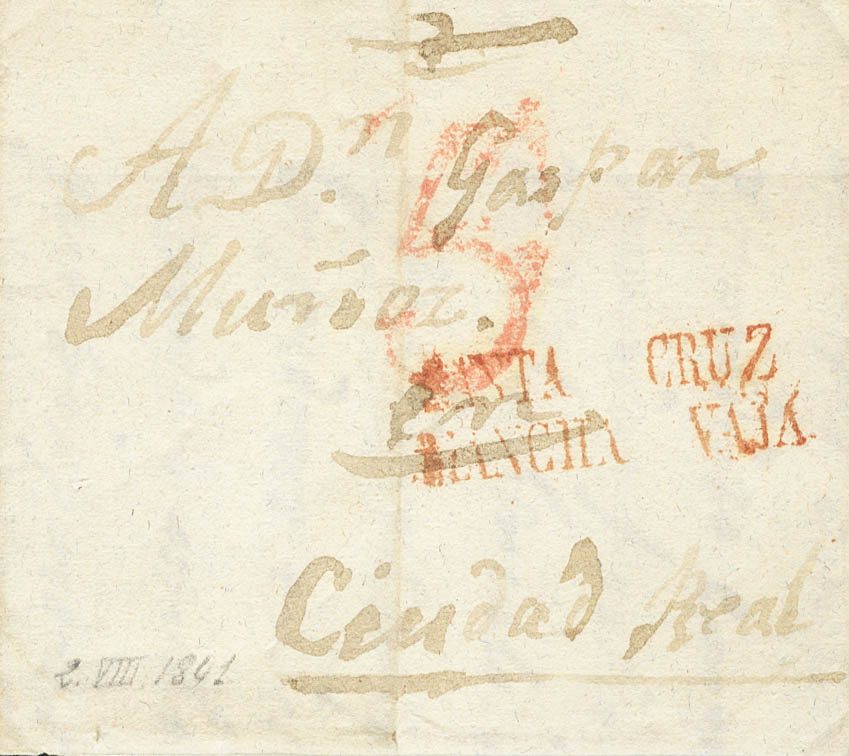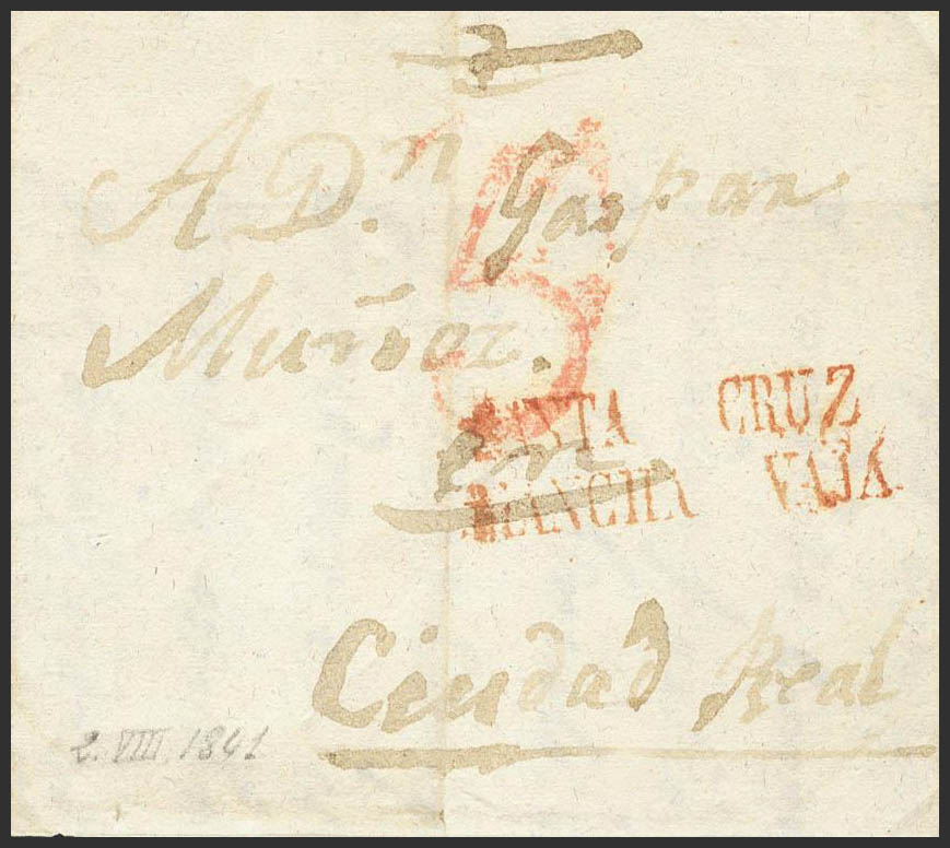 1841. TORRENUEVA (CIUDAD REAL) a CIUDAD REAL. Marca SANTA CRUZ / MANCHA VAJA, de Santa Cruz de Mudela (P.E.3) edición 2004. MAGNIFICA.