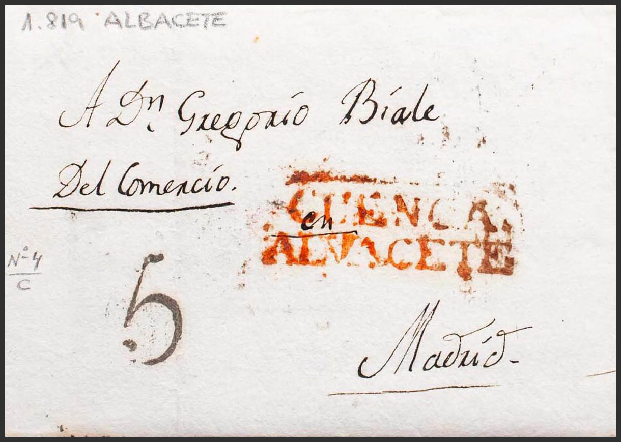1819. ALBACETE a MADRID. Marca CUENCA / ALBACETE (P.E.4) edición 2004. MAGNIFICA.