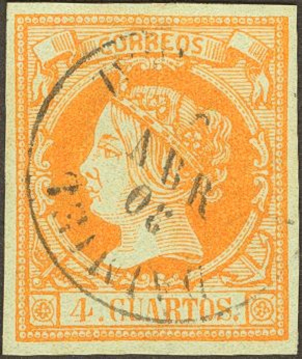 52. 1860. 4 cuartos amarillo. Matasello DAIMIEL / CIUDAD REAL.