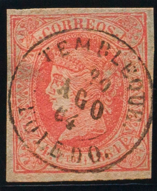 64. 1964. 4 cuartos rojo. Matasello TEMBLEQUE / TOLEDO. MAGNIFICO.