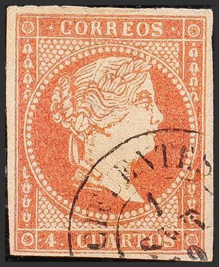 48. 1855. 4 cuartos rojo. Matasello CIFUENTES / GUADALAJARA. MAGNIFICO.