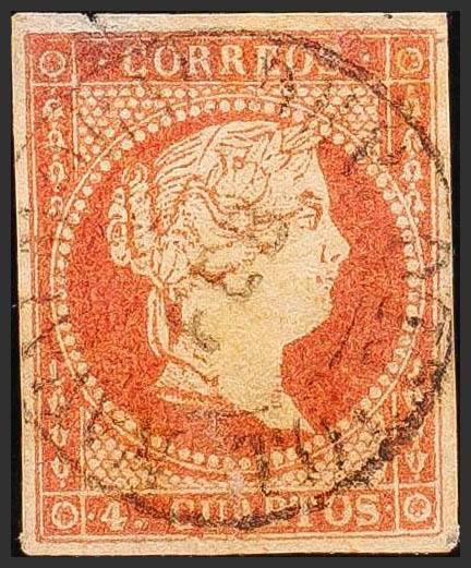 48. 1855. 4 cuartos rojo. Matasello NAVALMORAL DE P. / TOLEDO (Tipo I). MAGNIFICO Y MUY RARO.