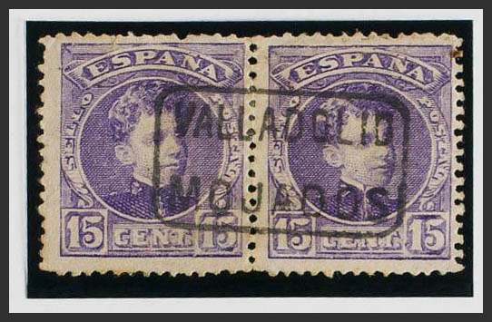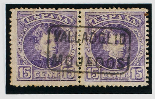 246(2). 1901. 15 cts violeta, pareja. Matasello carterÃa VALLADOLID / MOJADOS. MAGNIFICA.
