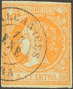 52. 1860. 4 cuartos amarillo. Matasello ALCAÑICES / ZAMORA.