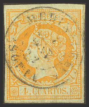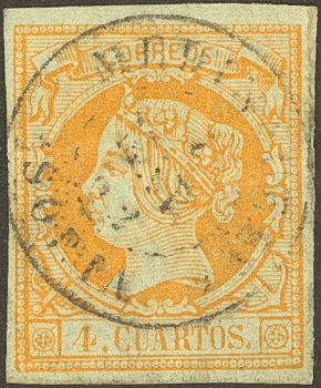 52. 1860. 4 cuartos amarillo. Matasello MEDINACELI / SORIA.
