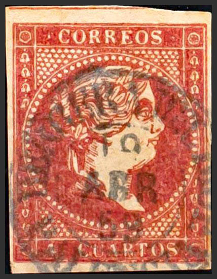 48. 1856. 4 cuartos rojo. Matasello HERRERA DEL RIO P. / PALENCIA (Tipo I). MAGNIFICO.
