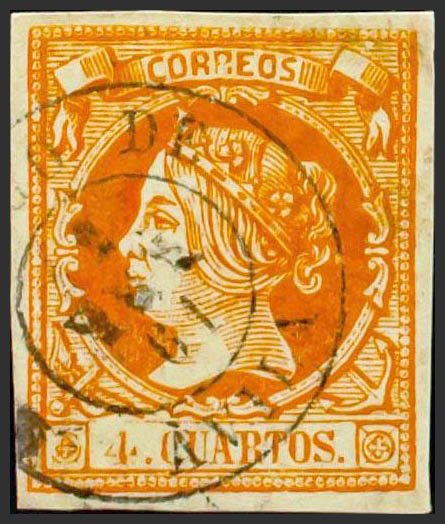 52. 1860. 4 cuartos amarillo. Matasello BARCO DE / AVILA. MAGNIFICO .