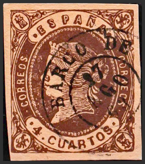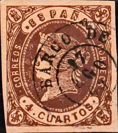 58. 1862. 4 cuartos castaño. Matasello BARCO DE / AVILA. MAGNIFICO.