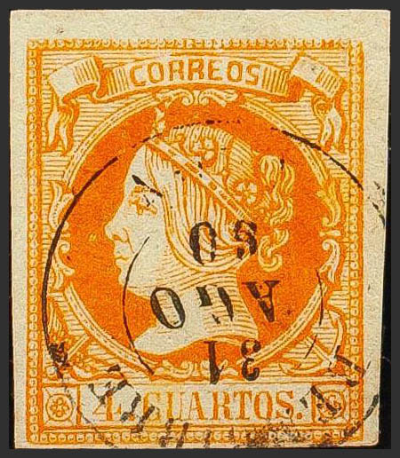 52. 1860. 4 cuartos amarillo. Matasello BEMBIBRE / LEON. MAGNIFICO.
