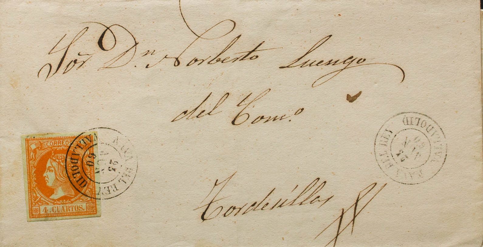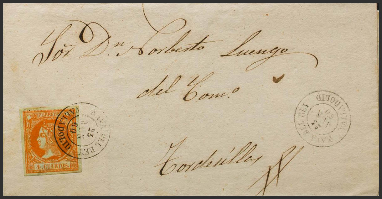 52. 1860. NAVA DEL REY a TORDESILLAS. Matasello NAVA DEL REY / VALLADOLID. MAGNIFICA.