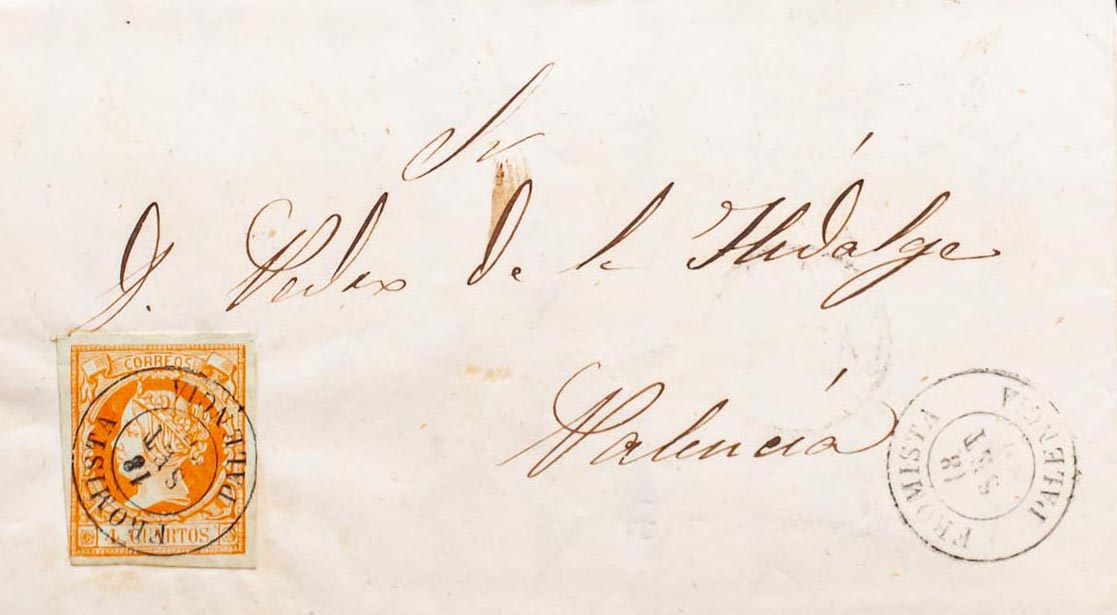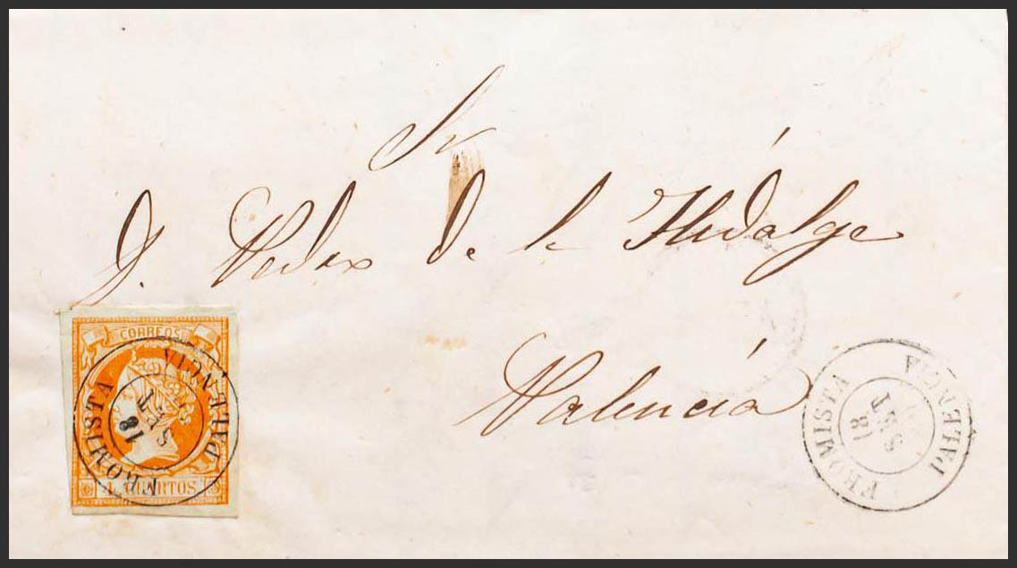 52. 1860. 4 cuartos naranja. FROMISTA a PALENCIA. Matasello FROMISTA / PALENCIA. MAGNIFICA Y RARA.
