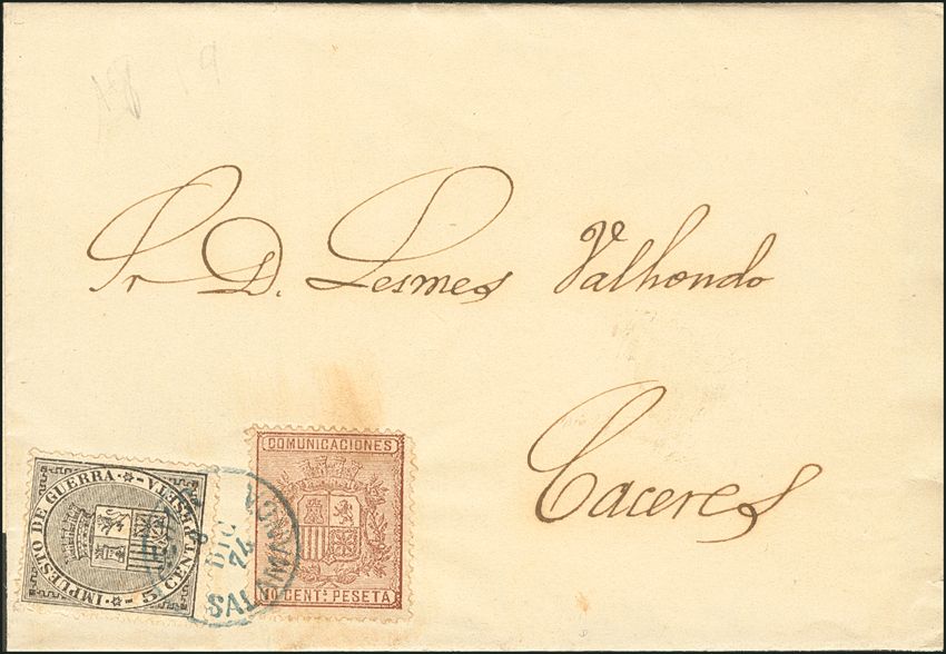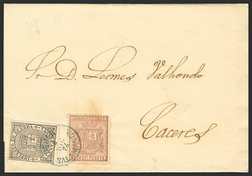 Castilla y León. Historia Postal. BEJAR / SALAMANCA, en azul. RARISIMO.