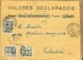 925(3). 1941. 40 cts verde gris, tres sellos. Valores Declarados de VILLARRAMIEL (PALENCIA) a VALLADOLID. Al dorso llegada. MAGNIFICA.