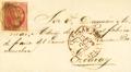 17. 1853. 6 cuartos carmÃn. CUELLAR a EZCARAY. En el frente baeza CUELLAR / CAST.LA V., en marrón. MAGNIFICA Y MUY RARA.
