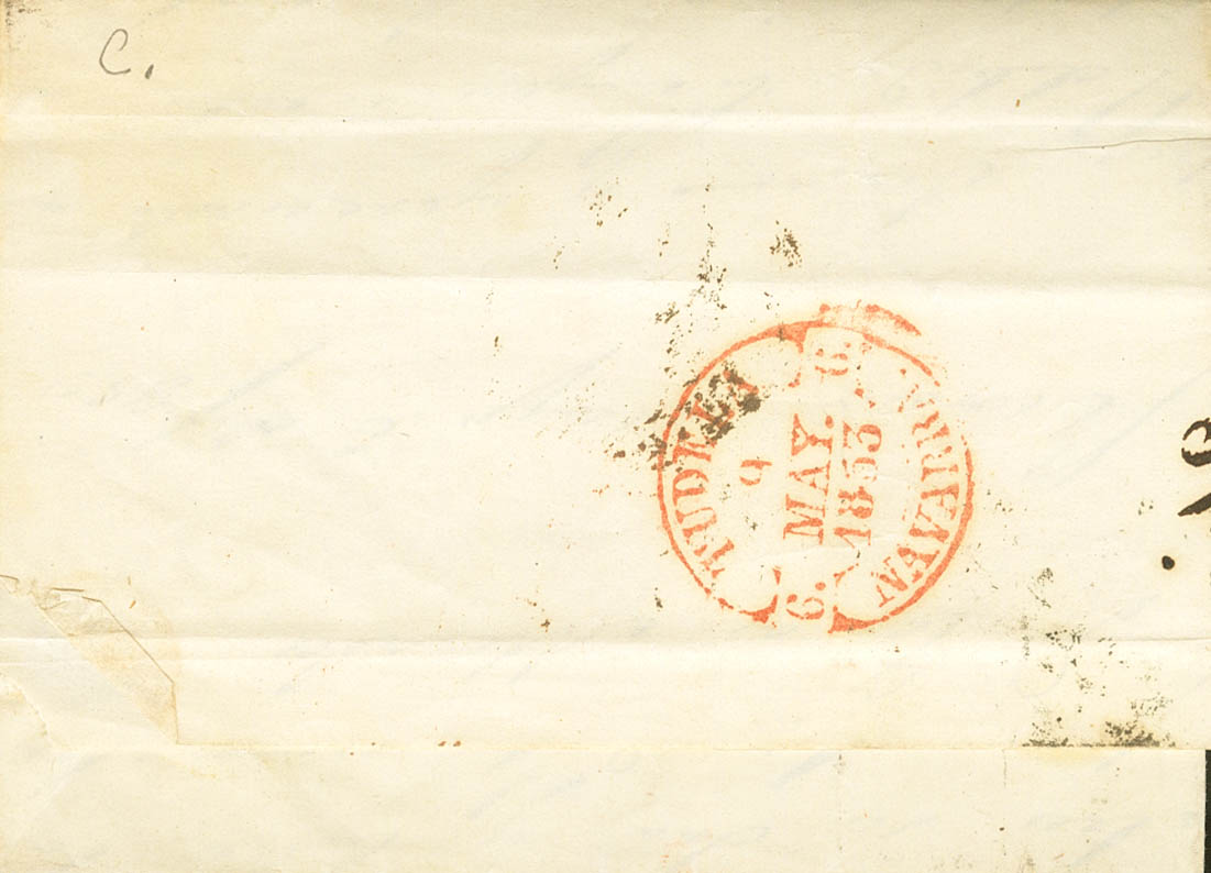17. 1853. 6 cuartos carmÃn. MEDINA DE RIOSECO (VALLADOLID) a TUDELA. En el frente baeza RIOSECO / CAST.LA V. MAGNIFICA.