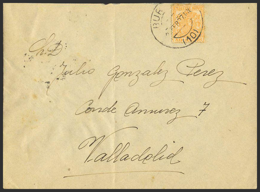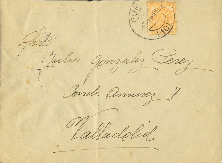 Fis 56. 1937. 40 cts naranja MOVIL. BURGOS a VALLADOLID. Al dorso llegada. MAGNIFICA.
