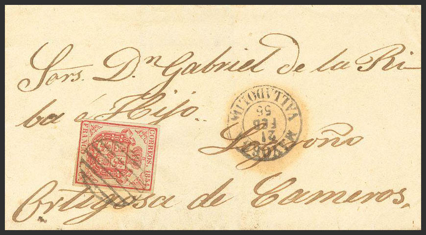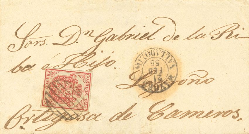 33. 1854. 6 cuartos carmÃn. MAYORA a ORTIGOSA. MAGNIFICA.