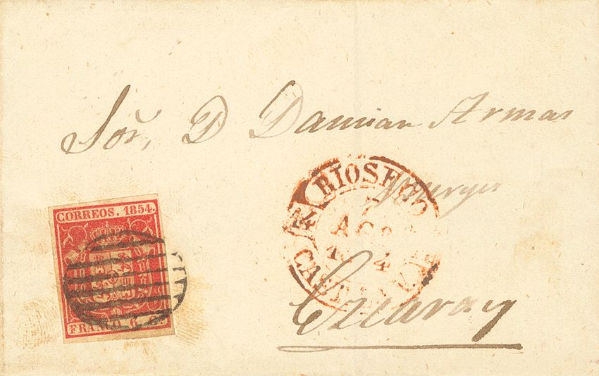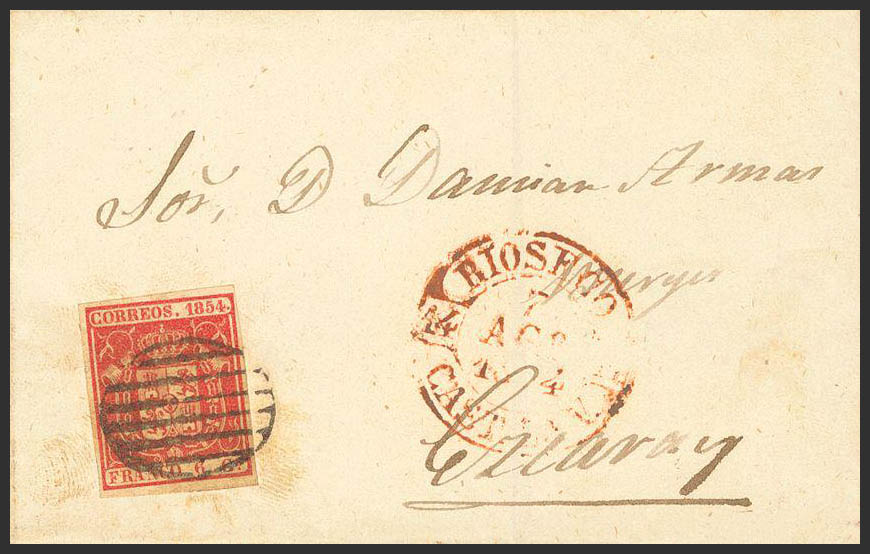 24. 1853. 6 cuartos rosa. RIOSECO a EZCARAY. MAGNIFICA.